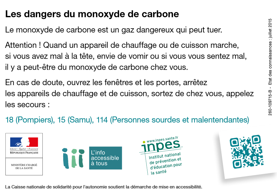 - Être attentif aux premiers signes d’intoxication : maux de tête, nausées, vertiges