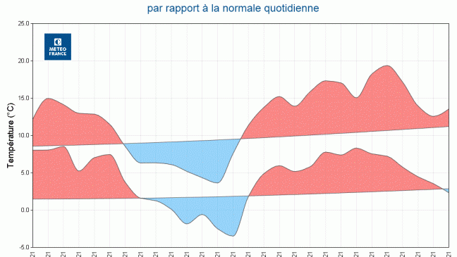 Les températures afficheront des valeurs de saison avec des variations selon les régions :